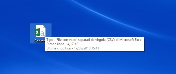 Quando passi con il mouse sopra l’icona del file esportato, una didascalia ti informerà che si tratta di un file con valori separati da virgola (CSV).